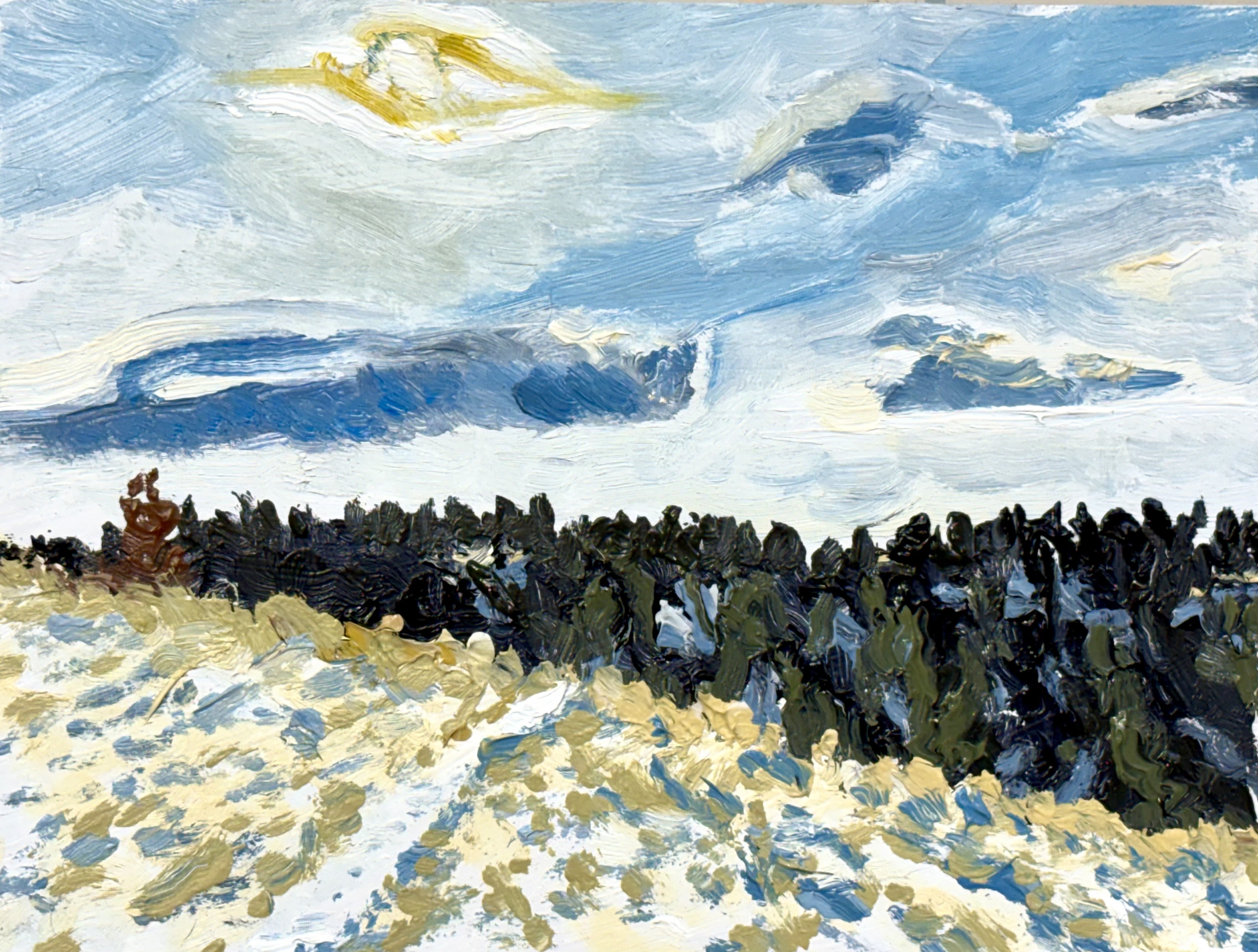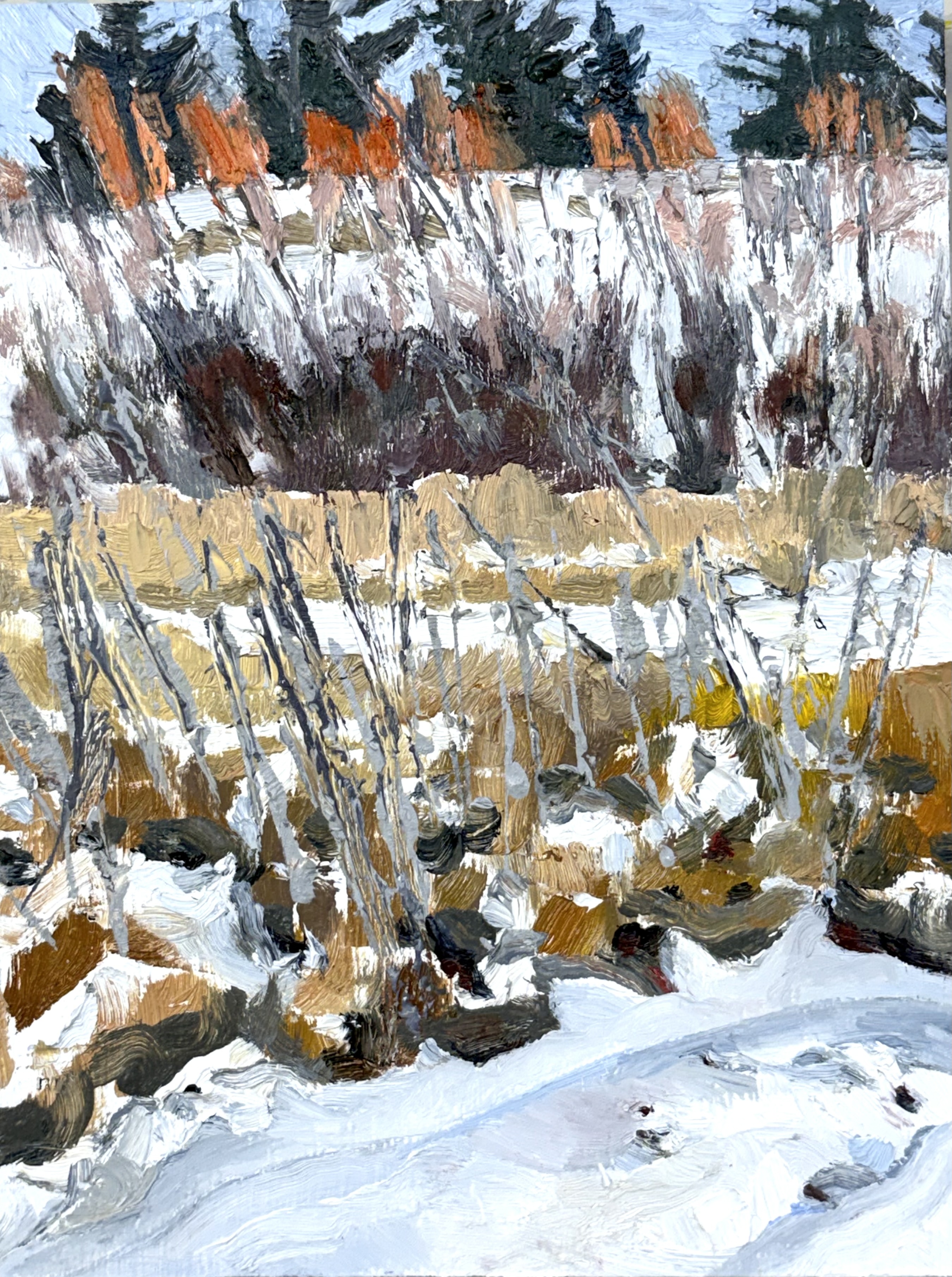 - Some are sold/spoken for, or being kept. Subject to availability. Please reach out for availability info; but, at this point subject to confirmation at least the following are sold: Fir Tree After the Last Real Storm; Fir Tree After Spring; Fenced Lakes (Coquihalla Lake); Nyla and I; Iris and I; Sun and Cloud at Emerald Lake; Strong Roots, Lit Outcrop; Staged Scene Prequel; Lightning Strike; Staged Scene 2; Poplar Pose; Thin Pond Painting No.1; Spring Greens in August; Erratic; Painting a Rock in the Oldman; Small Pine in the Clearing; Illusions of Nature; Centre Peak Teal Sky; New Pavement; Porcupine Hill Through Trees; Porcupine Hill Through Trees 2; Wind on Salt & Pepper Ridge; The Last Duck Gathering; Thin Ice; Willow Creek No. 1; Willow Creek No. 2; Si(gh)t(e) of the Two Trees; Weather Here and There (Lion Hill); Karmic 8; Listening to the Wind. Please check here for periodic updates to this list and also, I will need to provide final confirmation of availability.
