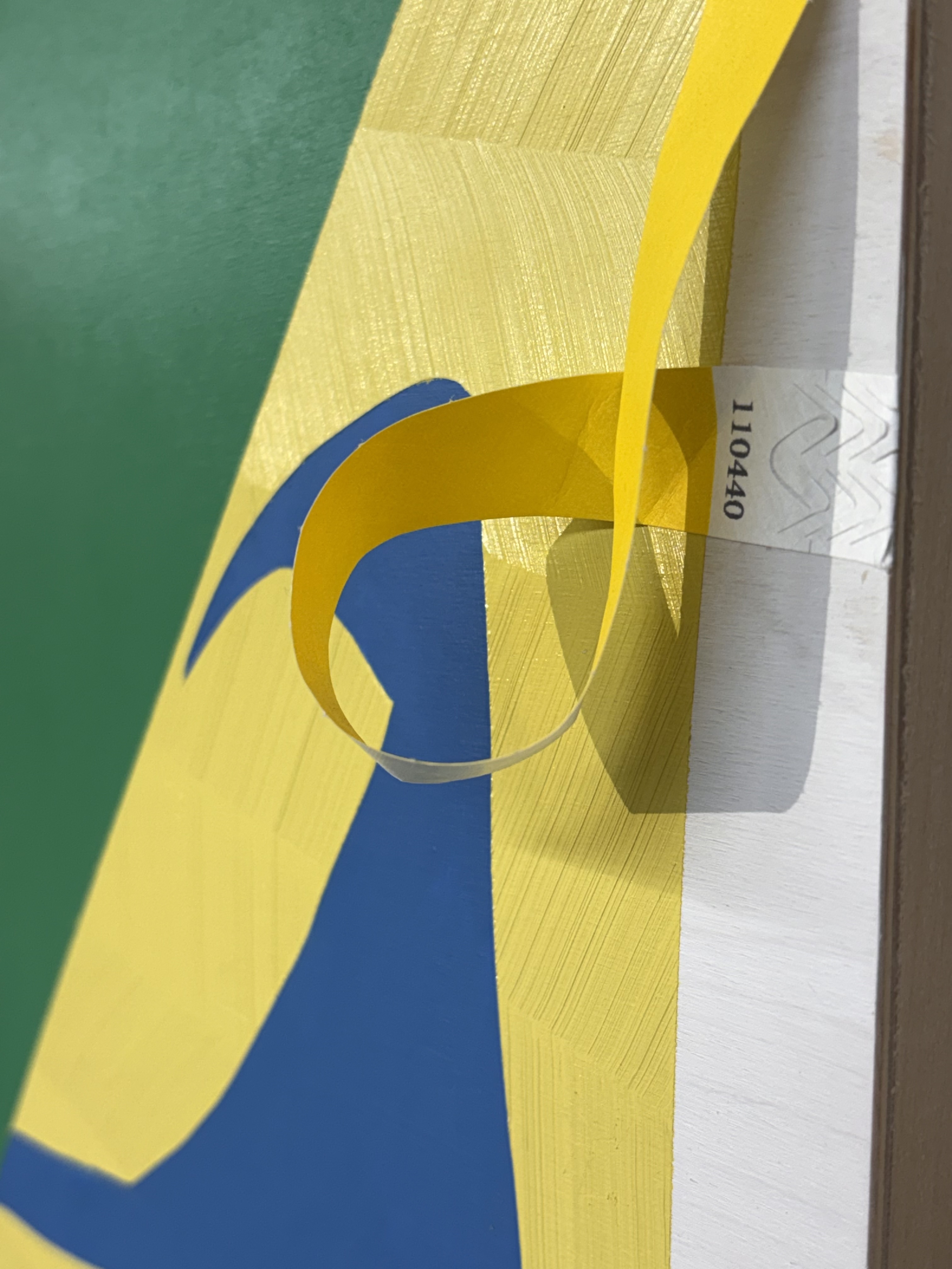 I laid out hundreds of objects I have found over the last about 25 years, being saved for 3-D work of some kind, on tables. I singled out a few that activated or interacted with the painted cut-out shapes. The objects on Butterfly are not associated or chosen to narrate anything; rather, they have a poetic relationship to each other and to the painted spaces, based on their visual qualities (e.g. colour, shape, weight, similar-but-not). The title of this work lets in “what if” ideas; like, what if the planet we live on was a giant butterfly moving around the Sun? What would our built environment, entropic activities and array of objects look like then?