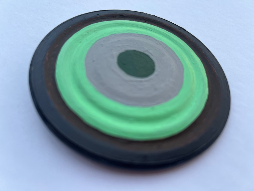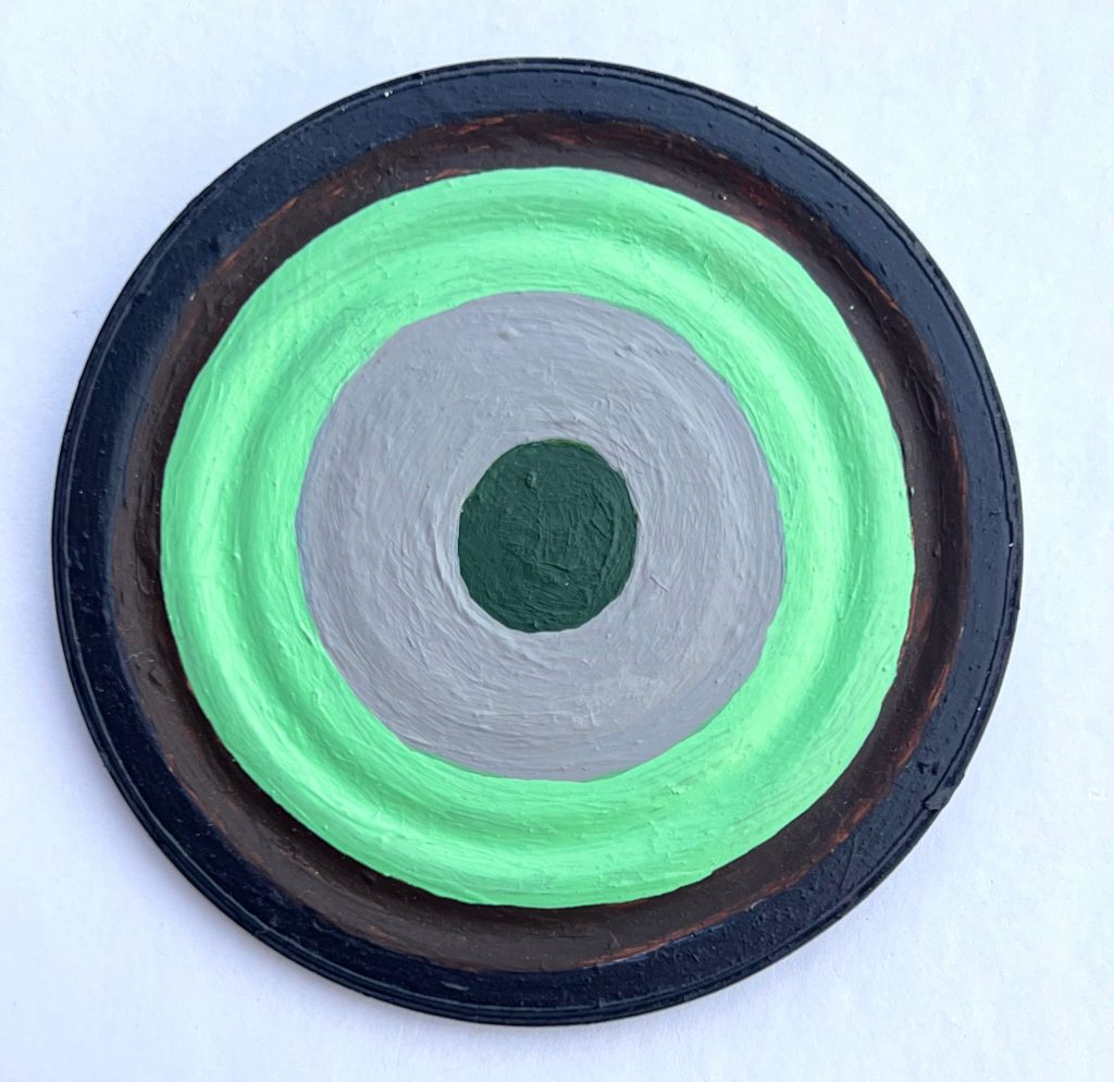 Acrylic on gesso on steel can lid