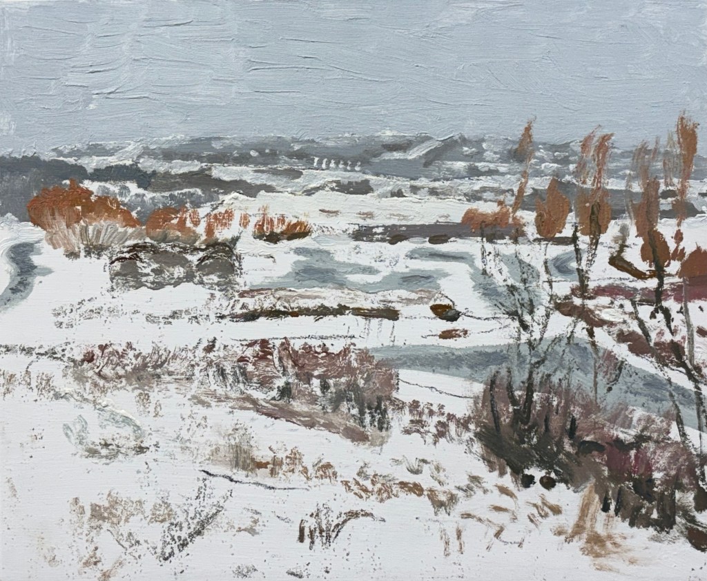 Even though it’s exhausting, frustrating, sometimes very cold and/or challengingly windy to be out there, I get to be with my dogs who are pretty much weather-agnostic. I (and they) feel healthier and more calm. Finishing a session gives me satisfaction. It engages me in a kind of painting activity that has become a little less common. Learning from failures, revisiting “good ones” that seem to lack; or, gaining insights from looking at the Masters and contemporary leaders in making landscape pictures – those are good ways to stay in the game.